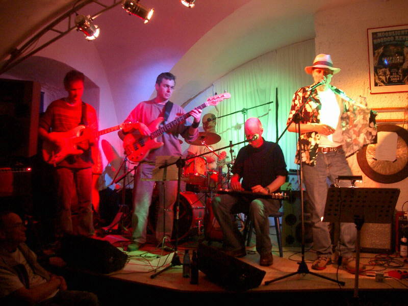 Die Überraschung im zweiten Set hieß Arthur Dittlmann, ein alter Musikerfreund von Dietz und Bandkollegen. Mit coolem Auftritt und sonorer Stimme begeisterte er das Deep Elem Publikum - ein echter Mundartblueser. Mal im Duett mit Dietz, mal mit der ganzen Band, spielte Arthur feinen Blues mit raffinierten Texten. Die Überraschung war gelungen und wurde mit begeistertem Applaus belohnt.