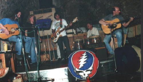 Der erste Abend in Plauen war die Vernisage eines verunglückten jungen Malers und Deadheads, Harry Krippner. Seine Eltern hatten sie mitorganisiert. Wir spielten zwei kurze akustische Sets. Das Publikum und auch wir waren begeistert. Der Sound, der Spirit, einfach genial! Die Krippners kamen nachher noch zu uns und bedankten sich für unseren Beitrag, der, wie Adolf Krippner betonte, ganz im Sinne seines Sohnes war. Für mich war es eines der intensivsten Erlebnisse als Musiker. Am zweiten Abend spielten wir nach “Schluff Jull”. Die sympatischen Jungs sind wirklich extraklasse, eine Jam-Band in echter Dead-Tradition. Das Publikum war total gut drauf und hat uns fast mehr mitgerissen als wir sie. Wieder ein gelungener Abend. Tags darauf traten wir zwei Bands in umgekehrter Reihenfolge auf. Schon wieder Riesenstimmung.
